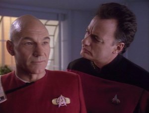 Q gives Picard the chance to do over the bar brawl and thus avoid death. When thrown back in time, the captain stays out of the fight much to the disgust of his friend. Picard avoids the stabbing, but then finds he lives out his career as a mid-level functionary – a paper-pusher who never rises to the level of captain nor to the respect of his fellow Enterprise crew members.
