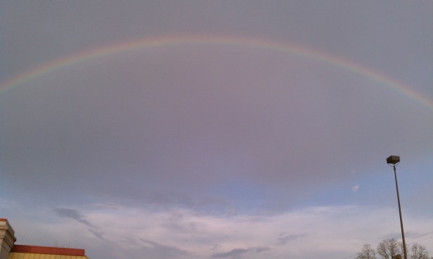 1. I loved this, Charley. I think the rainbow is one of the coolest things we get to enjoy in this life. And the phenomenon of everyone stopping to take pictures — which happened to me recently after a run at the YMCA one night — sort of stops you in your tracks. It’s like you get to witness everyone’s priorities and attitudes being reframed in one brief moment. Everyone turns into a kid again, able to have joy in the small things.