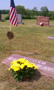 Yesterday, my sister and brother and I visited Mom and Dad’s gravesite for the first time. The VFW had planted a flag next to Dad’s name. We were a little surprised, and certainly grateful, to see the miniature stars and stripes fluttering in the warm breeze next to our dear father’s name.